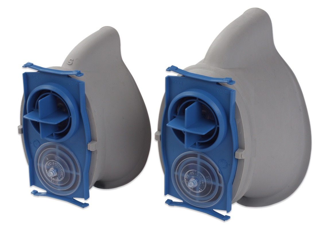 The mouthpiece is easily changed and is available in two different sizes for a better face fit. The spare part is delivered with in- and exhale valves which are easily fitted to the Air-Ace.